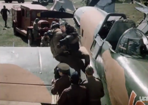 Several actions throughout this movie are based on radio-command models used both to simulate germans and russian aircrafts. For example, like this Messerschmitt Bf 109.