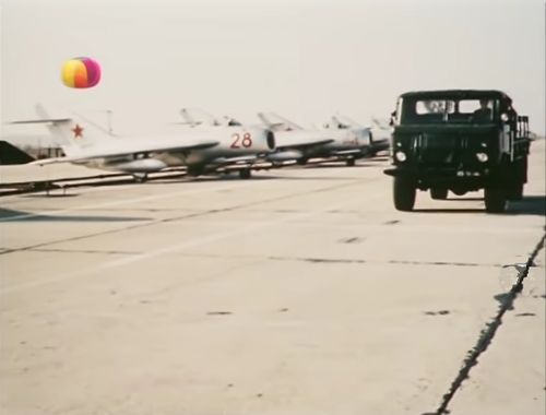 Just before this footage, another Mikoyan-Gurevich MiG-21U (45 Blue) is quickly seen taking off.