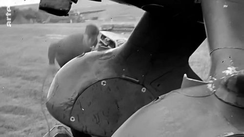 Wearing D-Day Black and White stripes still used during operations of mid-1944. Aircraft from 1er Groupe de Chasse FFI Groupe Marcel Doret that operated on Royan and Pointe de Graves in Automn 1944. Marcel Doret, one of the most famous French pilot, 'world champion' of aerobatics following a match with German pilot Georg Fieseler, is seen here with a beret and a light jacket.