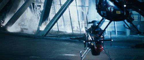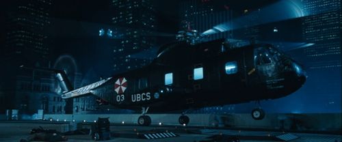 This Umbrella helicopter was originally intended to be used to transport Nemesis out of Raccoon City, however Alice and her group steal it and use it to escape.