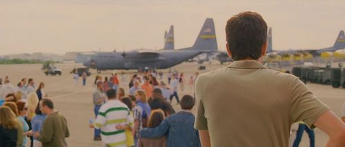 Seconds later the Hercules is behind the shape of a Grumman OV-1 Mohawk.