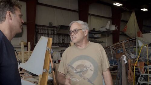 A (future) Spitfire built "from scratch" by an aviation enthusiast at Beaver County, Pennsylvania, USA. No name given but perhaps a Jurca MJ-100 homebuilt replica warbird ? Or a 90% scale-down Supermarine Aircraft Spitfire Mk 26 ?