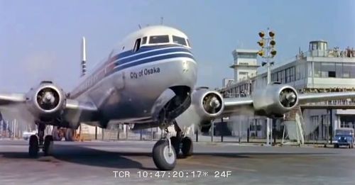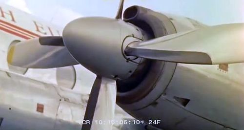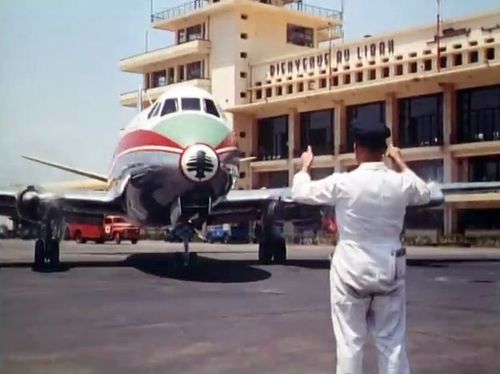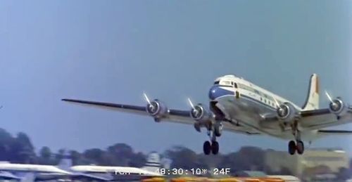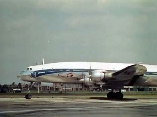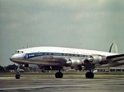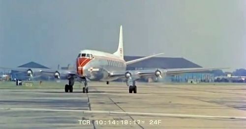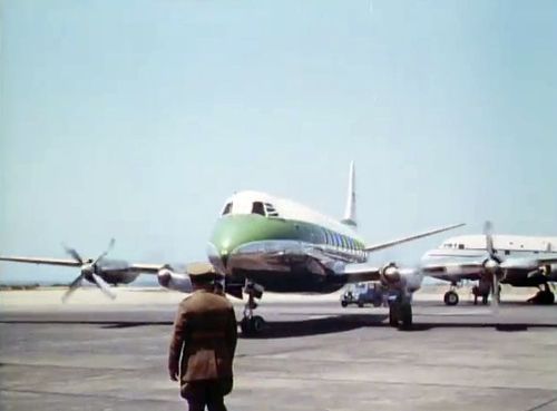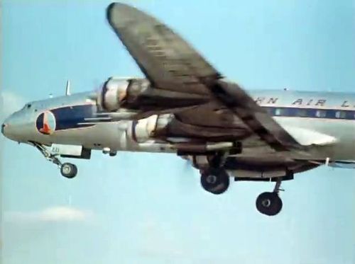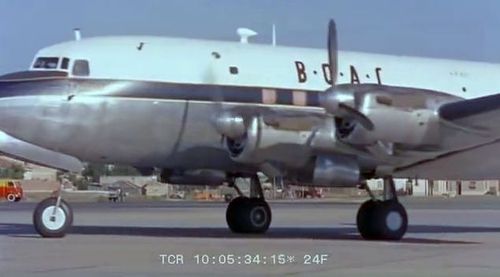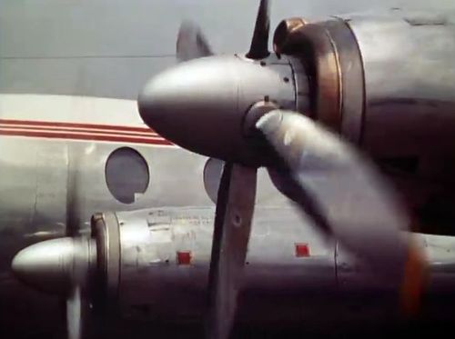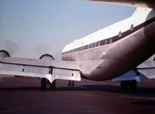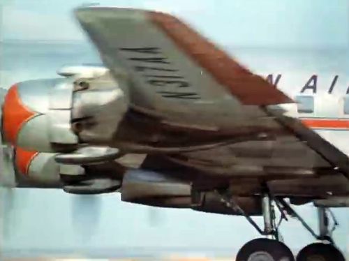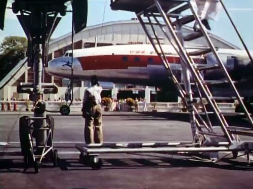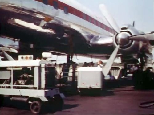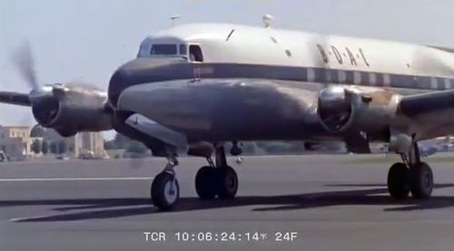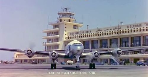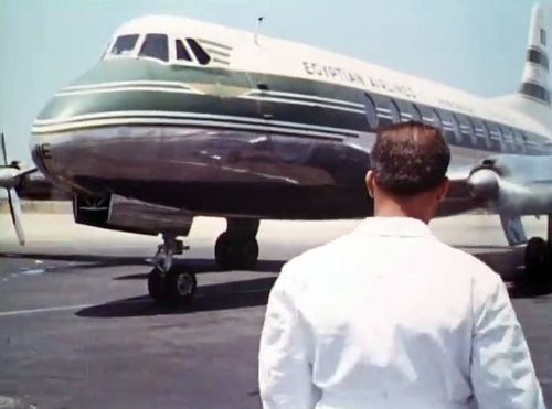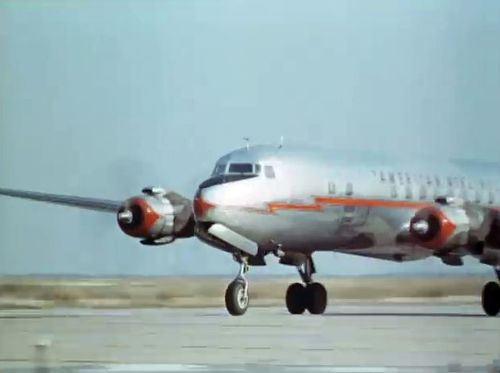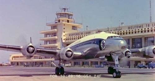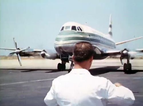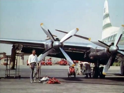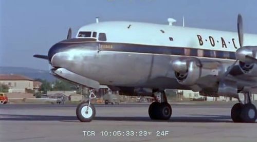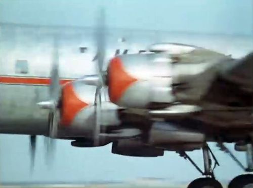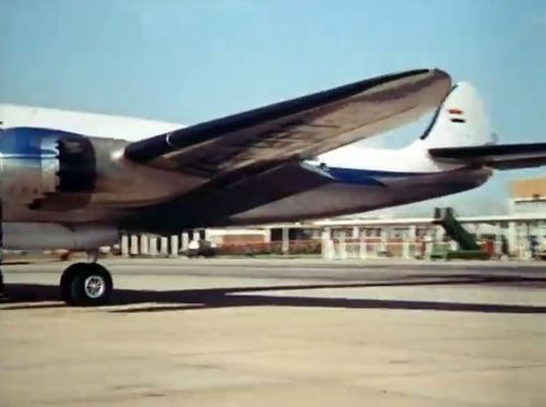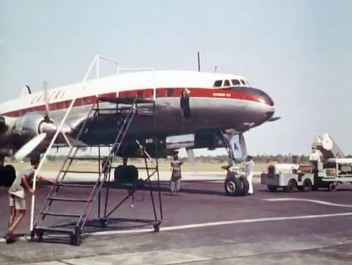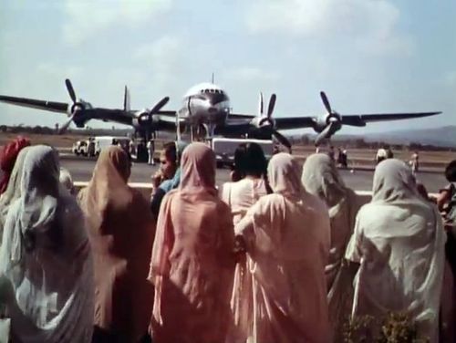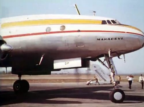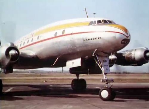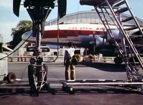 Air India's Lockheed L-1049 Super Constellation to the left background. Same aircraft seen in other films IMPDb: Frequently Seen Aircraft (Civil Fixed-Wing).