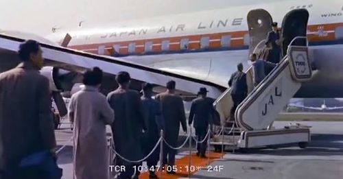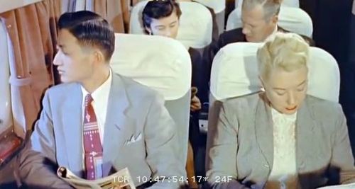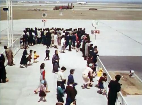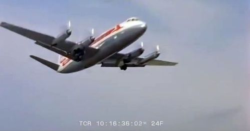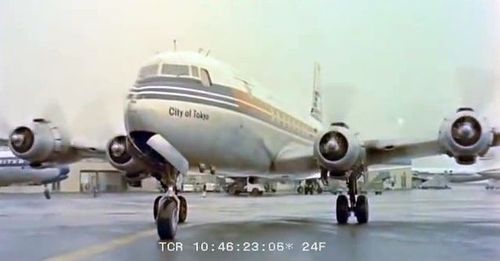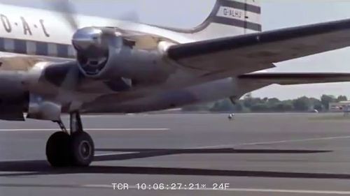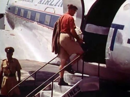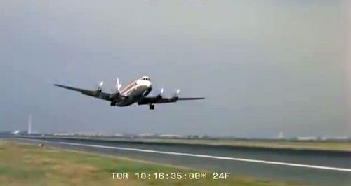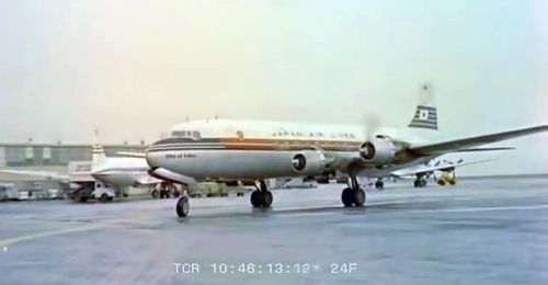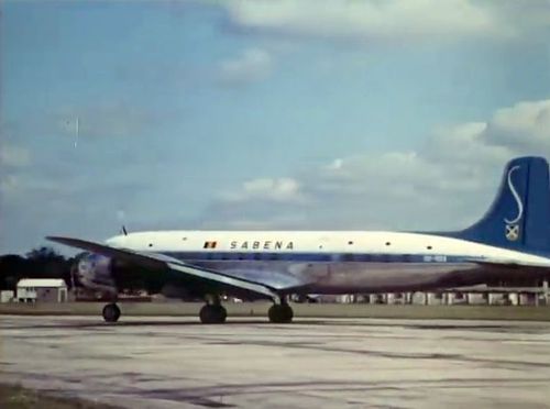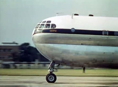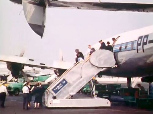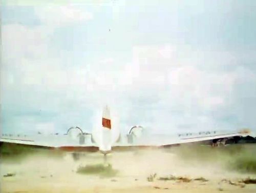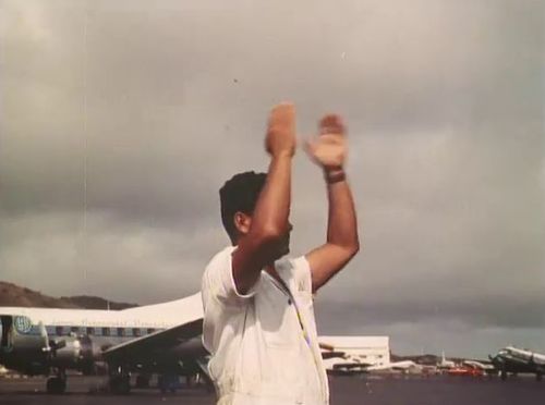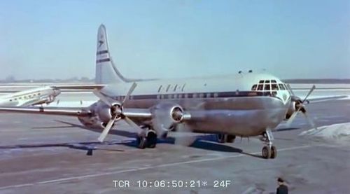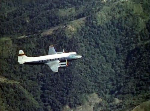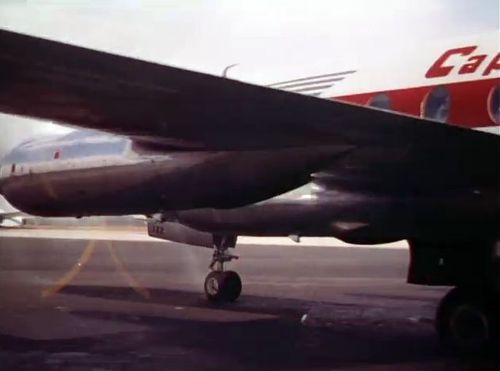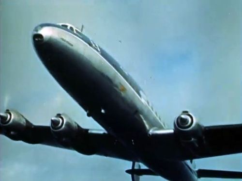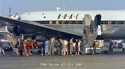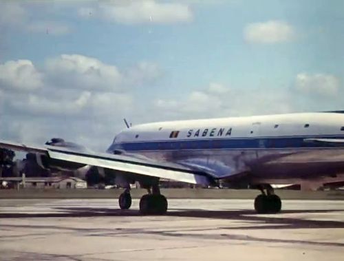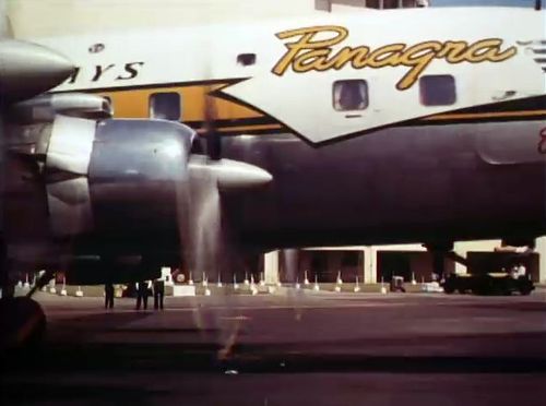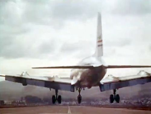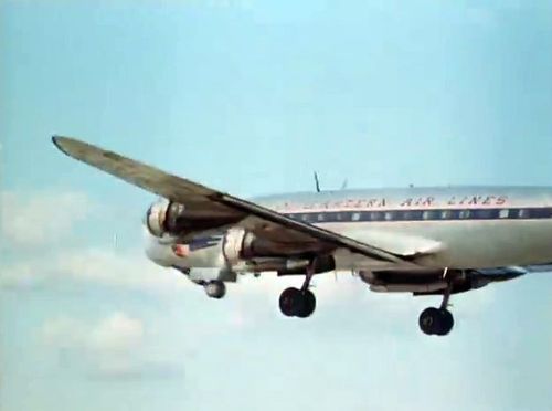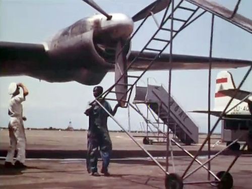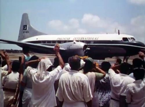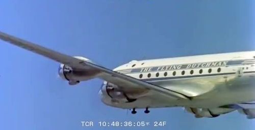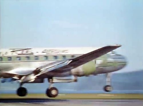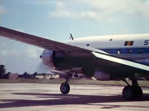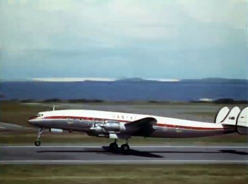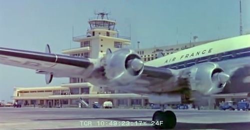 Air India's Lockheed L-1049 Super Constellation to the left background. Same aircraft seen in other films IMPDb: Frequently Seen Aircraft (Civil Fixed-Wing).
