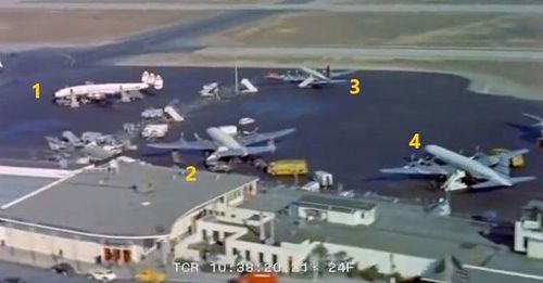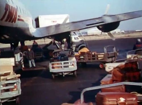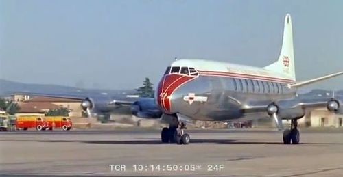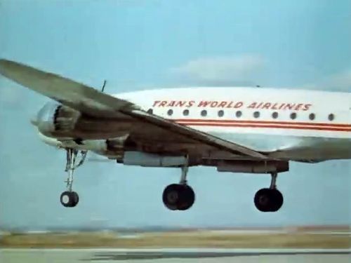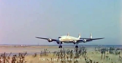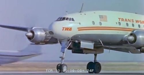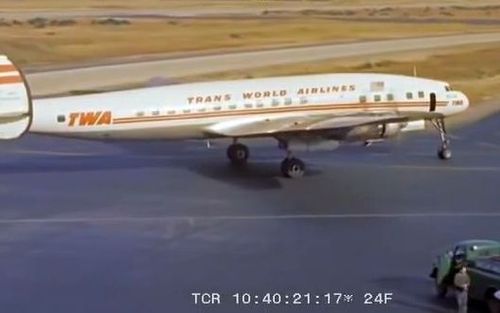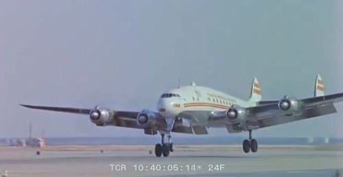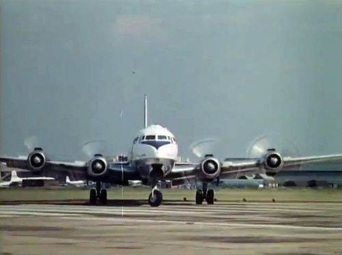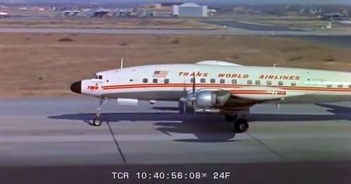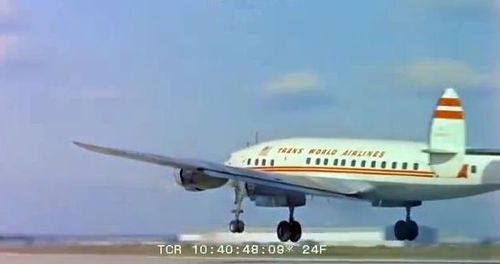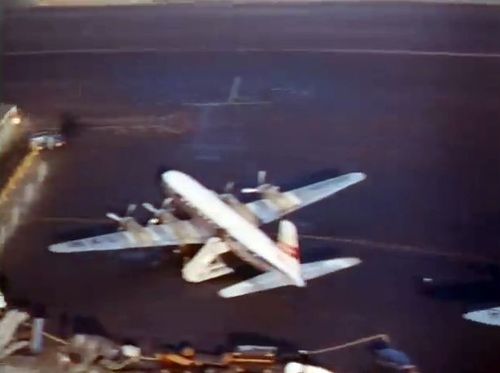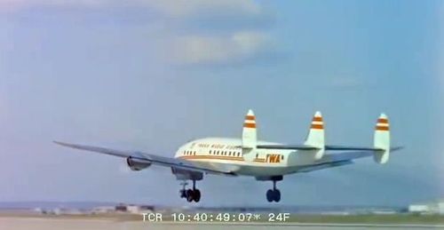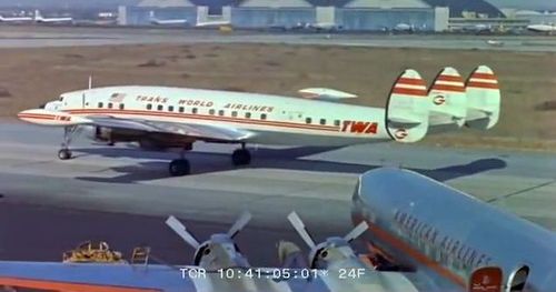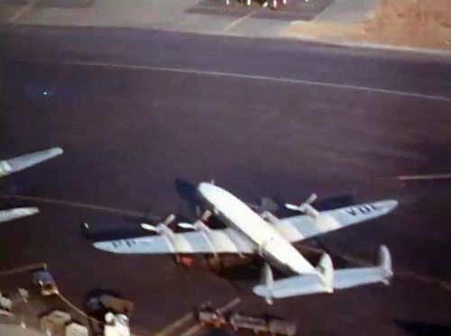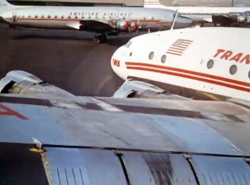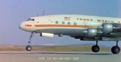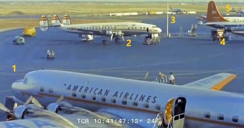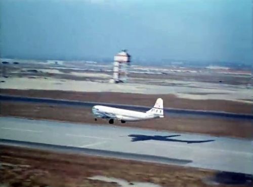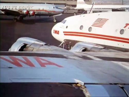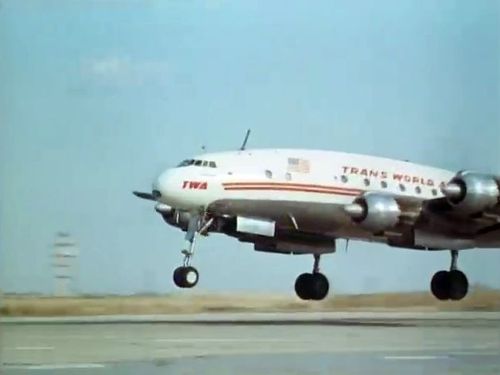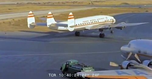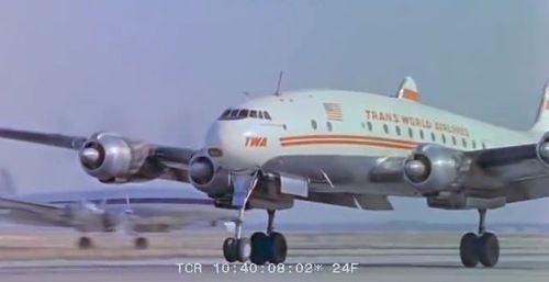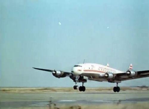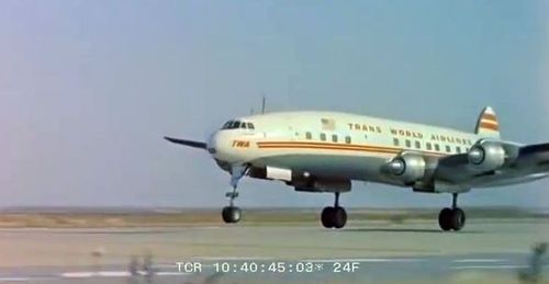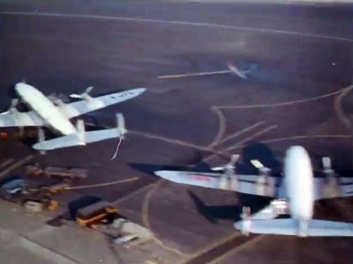 In the background, TWA's Lockheed Constellation (Same aircraft seen in other films IMPDb: Frequently Seen Aircraft (Civil Fixed-Wing)) and several Unidentified Aircraft.