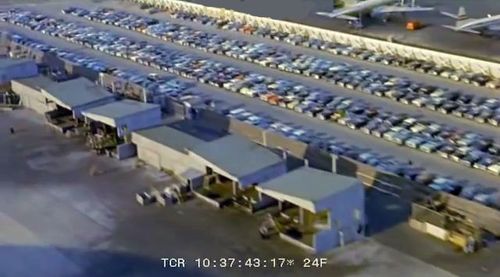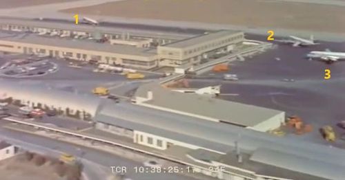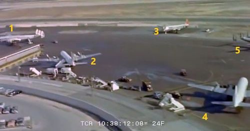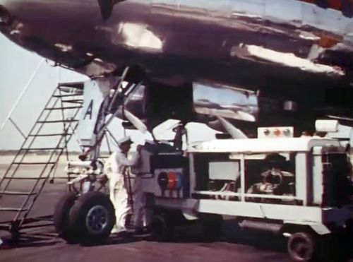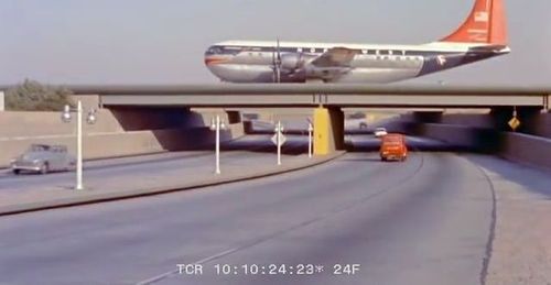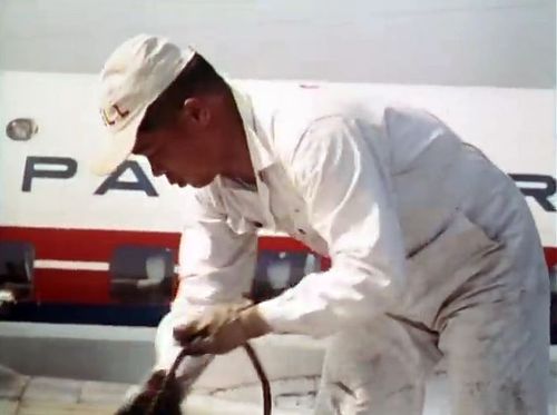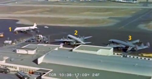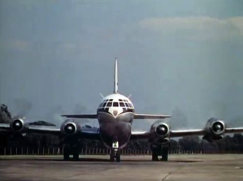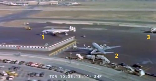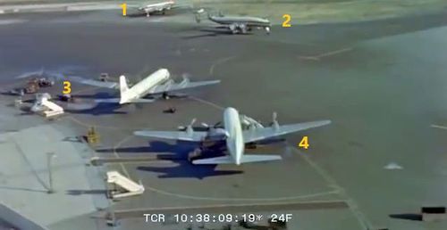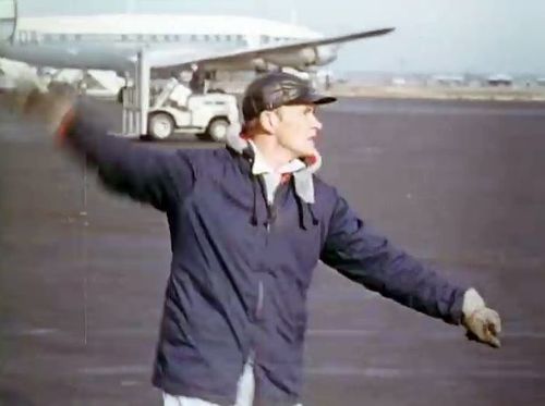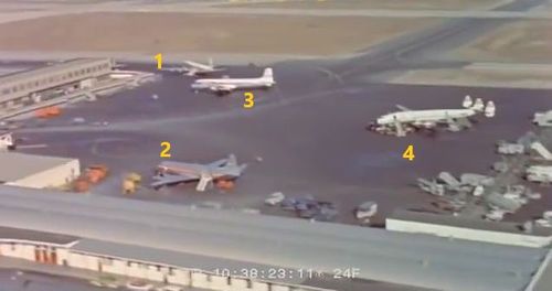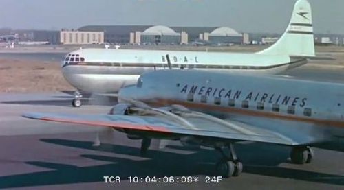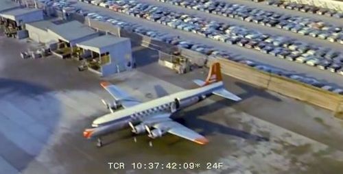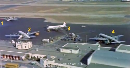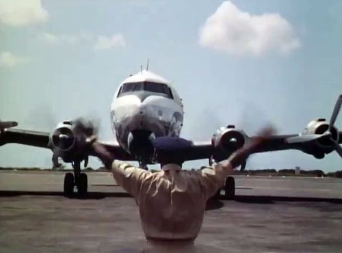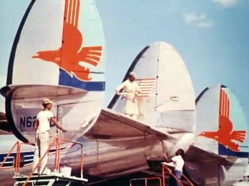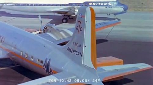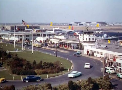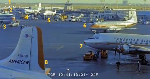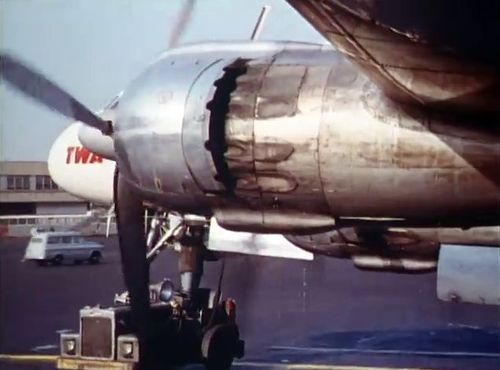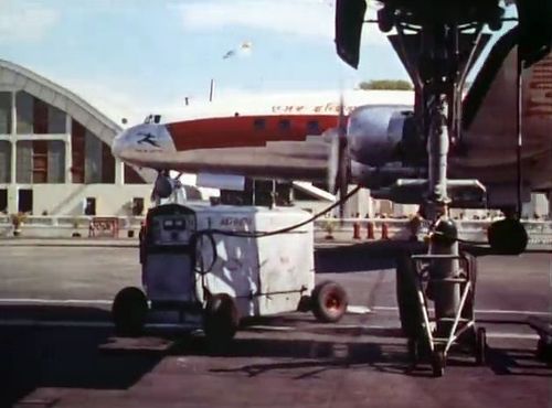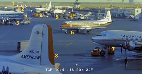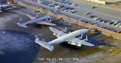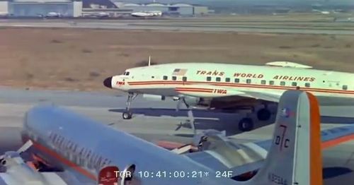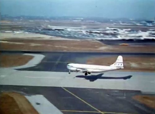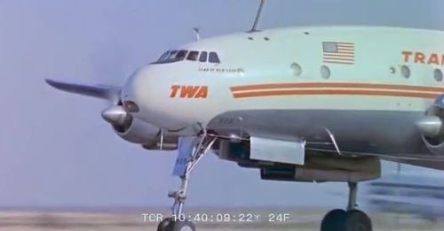 In the background, TWA's Lockheed Constellation (Same aircraft seen in other films IMPDb: Frequently Seen Aircraft (Civil Fixed-Wing)) and several Unidentified Aircraft.