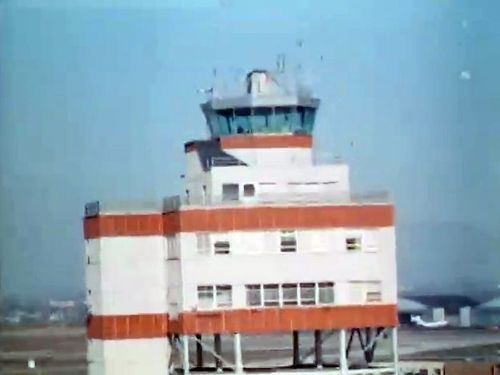 In the foreground is the 11-floor Control Tower of New York International Airport built in 1952.