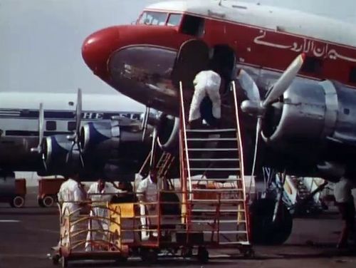 An Arabic speaker could help to tell which company this Douglas DC-3 or C-47 could belong to. The title inside the red sheet line doesn't match with usual colour scheme of Lebanese Middle East Airlines.