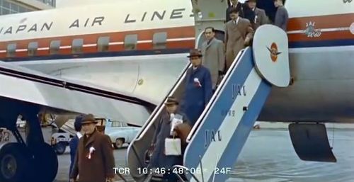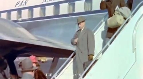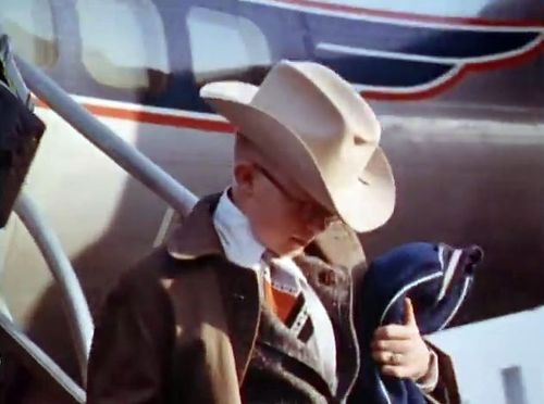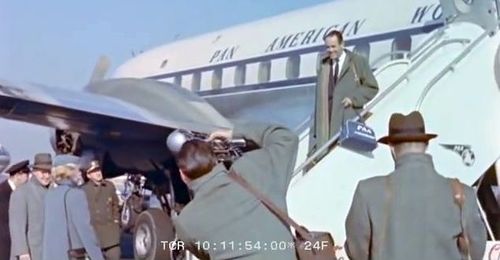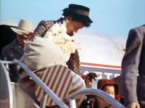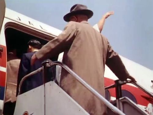 American actor Henry Fonda getting off the plane.