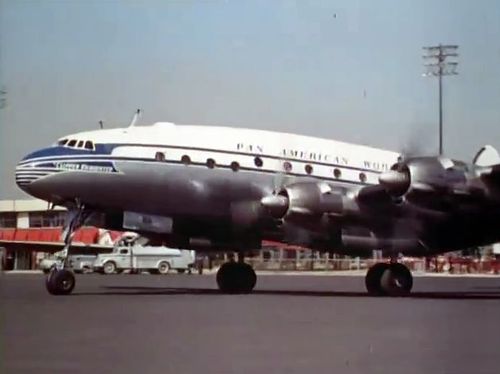 KLM Royal Dutch Airlines of Lockheed L-1049 Super Constellation and Boeing 377-10-26 Stratocruiser of PAA-Pan American World Airways in the background.