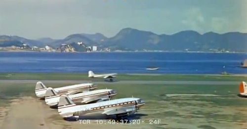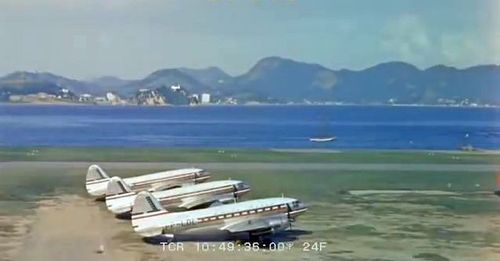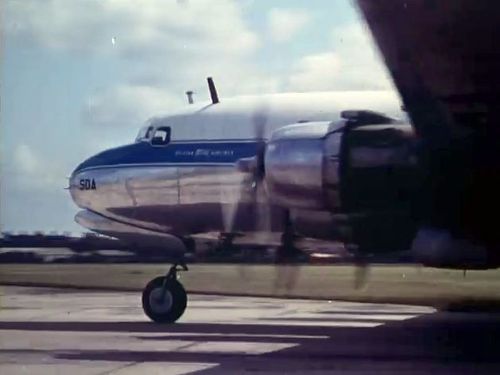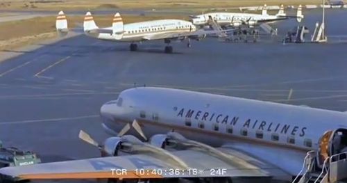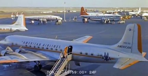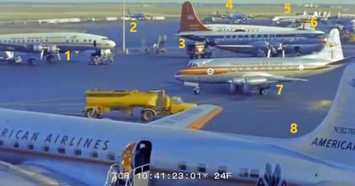 Lockheed Constellation below on the ground, with some Douglas aircraft to the right.