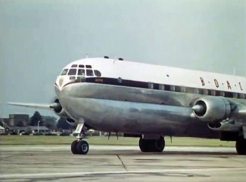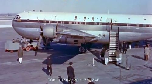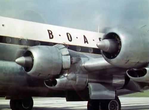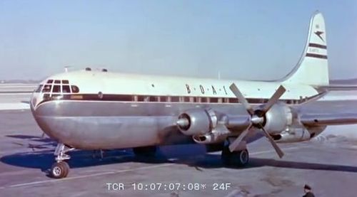 B.O.A.C's Boeing 377-10-34 Stratocruiser to the left background.