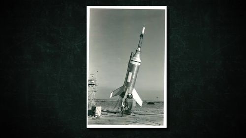 Little Joe 1 launch vehicle with Mercury capsule, August 1959 (flight LJ-6).