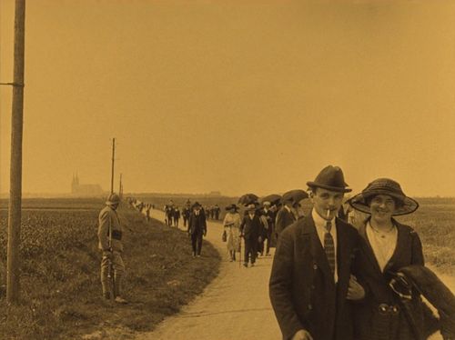 The film opens with an aviation meeting in Chartres (the two spires of the Cathedral of Our Lady of Chartres can be seen in the distance).