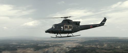 Reg. JA355E, c/n 9608, with false Aichi Prefectural Police markings. It should be noted that this specific unit was delivered in 2002 despite the movie taking place in 1995. Same aircraft in other works at IMPDb: Frequently Seen Aircraft (Rotary-Wing).