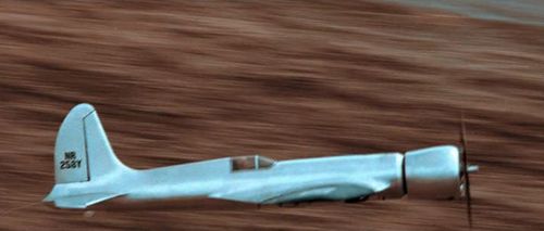 Scale model from the Aero Telemetry team. A replica registered NX258Y, built by James Wright in 2002 was originally slated for use in the film, but was completely destroyed in August 2003, and Wright was killed in this accident.