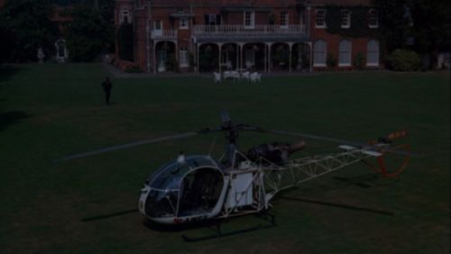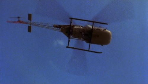 Newcliffe, attempting to shoot the beast, accidentally hits the Alouette's fuel tank, blowing it up. A scrapped Alouette with the registration T-AWEK is used for the shot of the helicopter exploding.