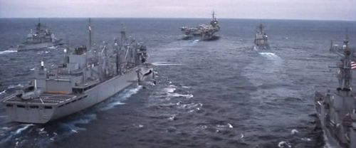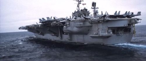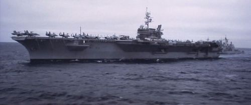 Most obviously are the McDonnell Douglas F/A-18 Hornets scattered across the deck but the radome of two Northrop Grumman E-2 Hawkeyes.