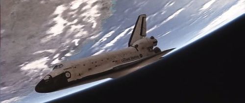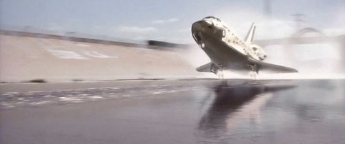 Described as OV-105, Endeavour. Forced to make a crash landing after magnetic interference screws up the navigation system.