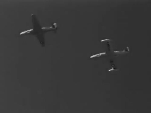 Chased now by the P-80 flying with a Lockheed T-33 Shooting Star.