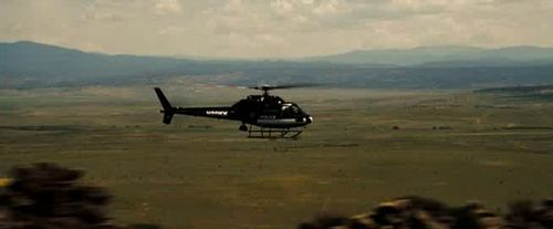 New Mexico State Police helicopter used as "eyes in the sky" during the initial police pursuit. Ryder intervenes and shoots the pilot, causing it to crash. Registration N80KK, c/n 5488. Same aircraft in other works at IMPDb: Frequently Seen Aircraft.