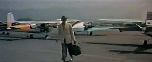 Seen at a stock base; numerous aircraft but the stills are too small to be sure of various type guess in the distance.