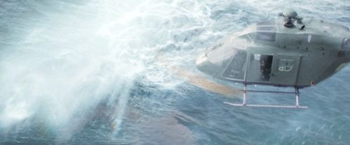 Chinese news helicopter. One of three covering the team's attempt to kill the Meg. Crashes into the AStar after its pilot swerves to avoid hitting the JetRanger, crashing onto the deck of the team's ship.