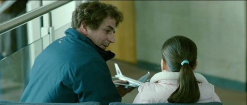 Airport terminal : the father hold an Airbus A340 of Malaysia Airlines.