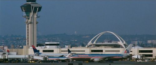 The Los Angeles International Airport (LAX) apron with three American Airlines airliners and two Delta tails.