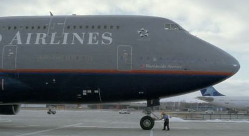 Boeing 747-422 of United Airlines. On the screen in the security center.