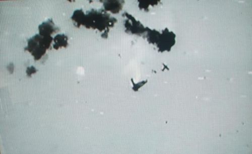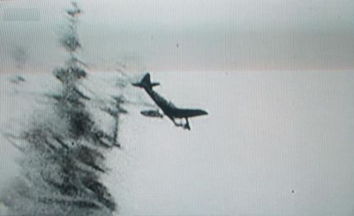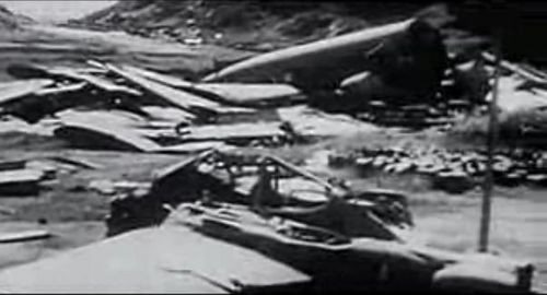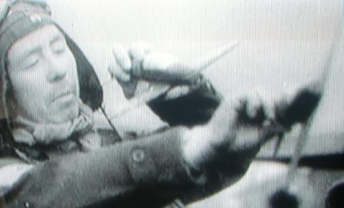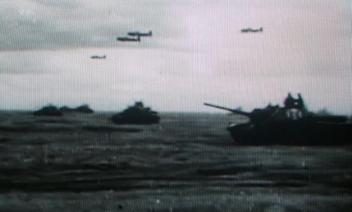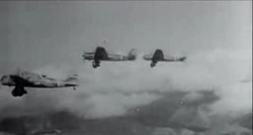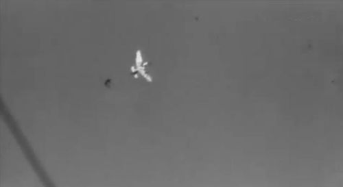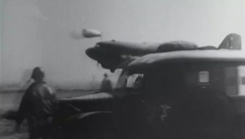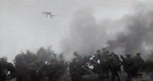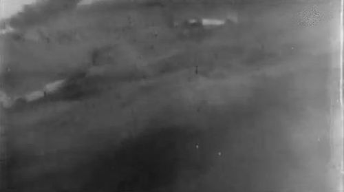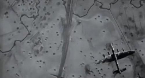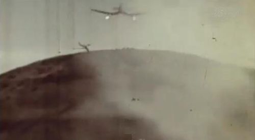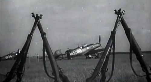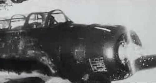 A gun camera during a straffing with Bf 109 or Ju 88 under the fire.