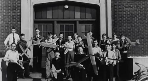 American boys and their flying models; some have familiar lines, common to real airplanes.