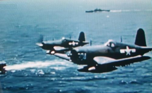 Both are in the background; in the center for the Vought and on the right of the picture for the Curtiss.