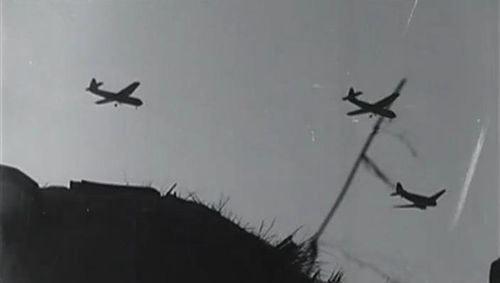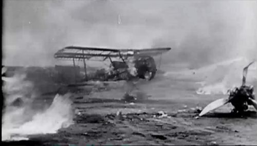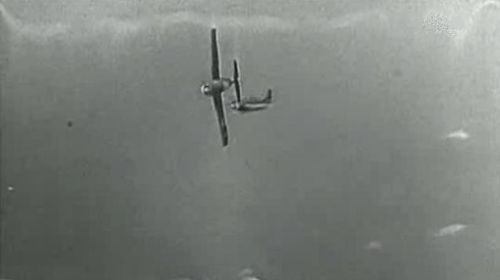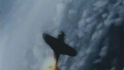 Still to illustrate the civil war held between 1936 and 1939, a dogfight between two unidentified aircraft.