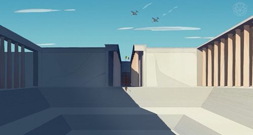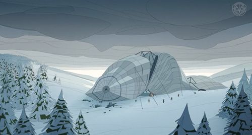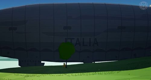 Fictional aircraft in which Amundsen is welcoming Nobile at the pilot's paradise.
