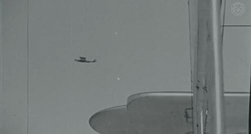 Filmed from the Savoia Marchetti S.55 (on the right, tail boom and horizontal stabilizer with the (moving) elevator of the S.55).