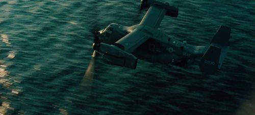 One of the aircraft operating with the V-22s is shown as a larger, tandem variant of the V-22, which doesn't currently exist.