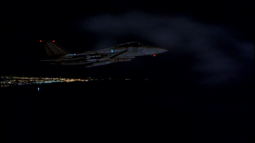An F-14 (clearly a model aircraft) ordered to escort and if need be shoot down the stricken Trans Continental airliner.