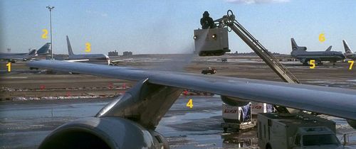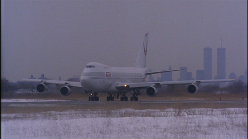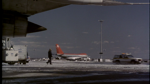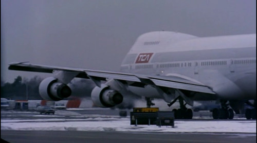 A Boeing 747 of Northwest Airlines appears in the background of the New York scenes as the prisoners are being bought to the Trans Continental 747.