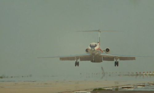 According the screenplay, this is the landing of Flight 036 of (fictitious) Iraqi Airlines from London-Gatwick ...