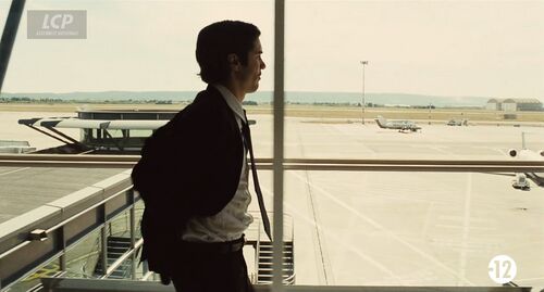 Just the wingtip and a view of the cabin centered on Malik (three seats across); impossible to be more precise.