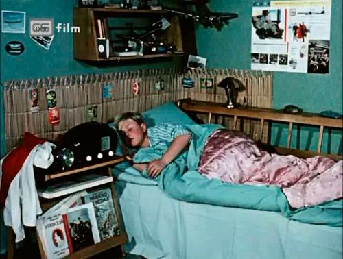 A model hanging above Pepíček’s bed сlosely resembles Boeing B-17 bomber. The poster on the wall (right), although blurry, most likely shows one of de Havilland Comet versions. There are some other planes on the pictures, but they cannot be reliably identified due to picture quality.