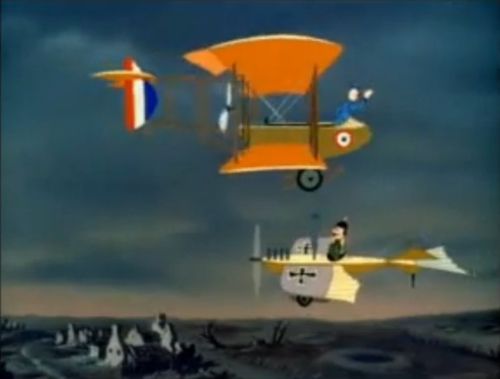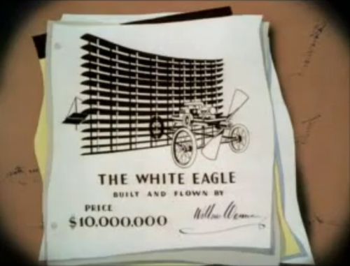 A cartoon by Disney's studios which tells in the first part, the story of aviation; the second one recalls evolution of air power; the last one introduces A. de Seversky and the theory of his book about future air power and strategy. (note: some airplane are drawn with great accuracy but most have unusual details (for example: armament or engine) and a handful are pure caricatures).