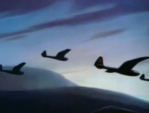Note: This is an animated film. The aircraft shown in it are therefore not actual aircraft, however, where a reasonable depiction of an actual aircraft has been created, it has been identified as best as possible.
