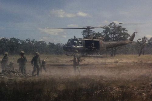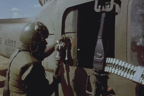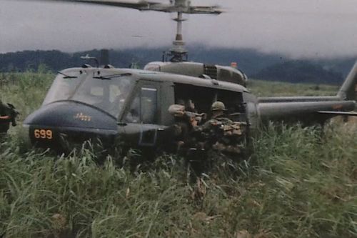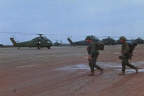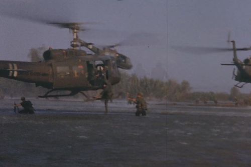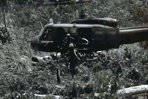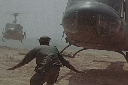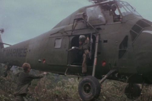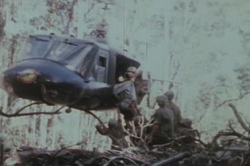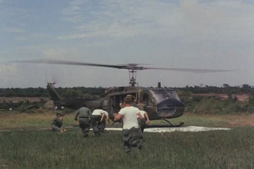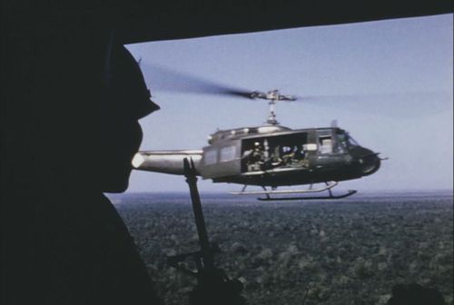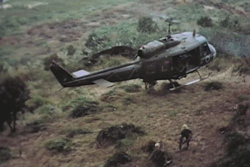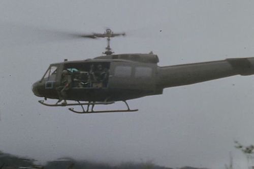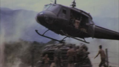 Bell 205 of Air America. A similar scene is already seen in The Weather Underground or in Mystères d'archives (TV Series), Ep. 2.10 (1975 : The Fall of Saigon) but as Air America used several types of helicopter (UH-1B and H, Bell 205), it's hard to be sure it's really the same one seen with this screenshot.