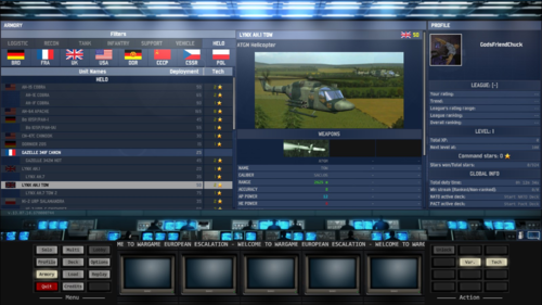 Wargame: European Escalation is a real-time strategy video game developed by Eugen Systems and published by Focus Home Interactive. It is set in Europe during the Cold War, most specifically in the years 1975-1985 with alternate history scenarios portraying open war between NATO and the Warsaw pact.