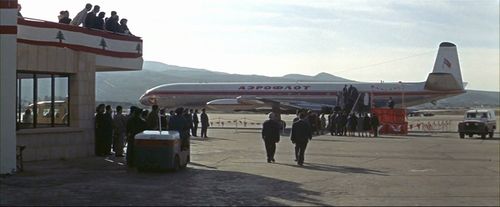 Probably the former Comet 4C of MEA-Middle East Airlines-Air Liban disguised by a temporary painting of the fin and the application of the name of the Soviet company and filmed at Beirut International Airport (BEI/OLBA)... itself acting as Habana (!) airport (as written on the building; note the four Cuban flags).