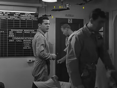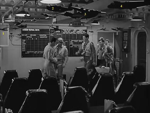 Star of the movie, the crews of VT-5 (as clearly said by Dana Andrews), a torpedo/bomber unit of the US Navy flying Grumman TBF Avengers (or TBMs if built by General Motors).